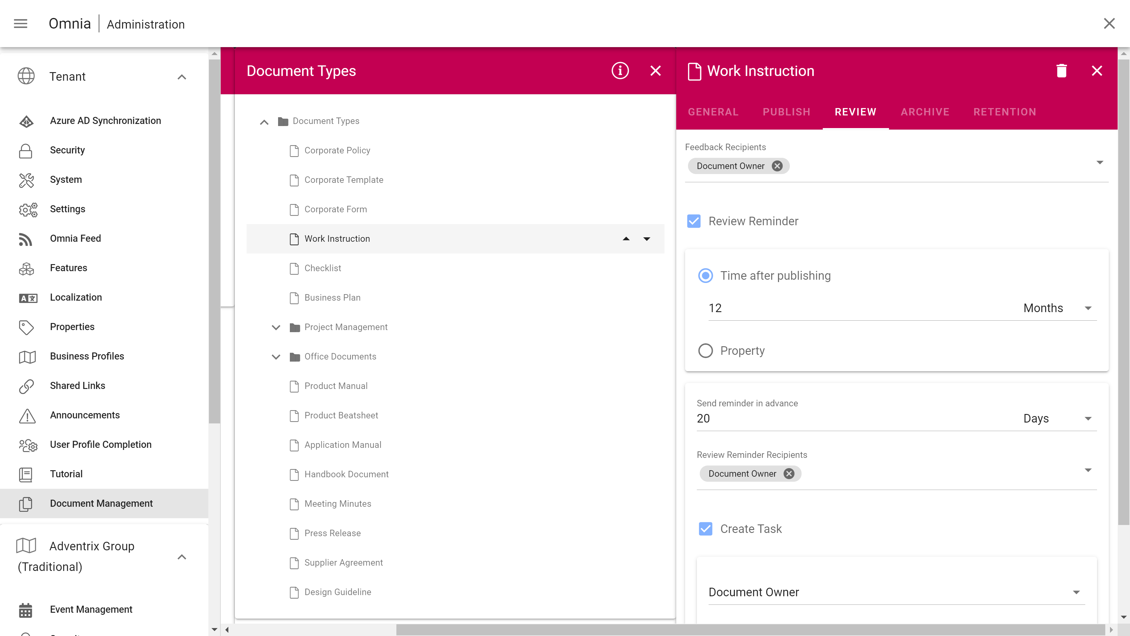 Med Omnia kan du säkerställa att alla viktiga dokument hanteras på rätt sätt över hela organisationen. Dokumenthanteringssystemet ger stöd för att skapa definitioner för olika typer av dokument och fastställa regler för hur dessa ska hanteras över sin livscykel. Du får verktyg för att definiera till exempel metadata och egenskaper, hur godkännande ska gå till, pdf-konvertering, revision och arkivering. Äntligen finns ett bra stöd för ordning och reda bland viktiga dokument.